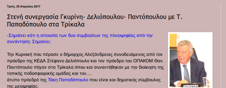 Στενή συνεργασία Γκυρίνη- Δελιόπουλου- Παντόπουλου με Τ. Παπαδόπουλο στα Τρίκαλα